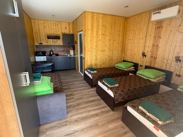 Каждый дом оборудован всем необходимой техникой и посудой для самостоятельной приготовлений еды. Все дома размещают до 4 х человек.